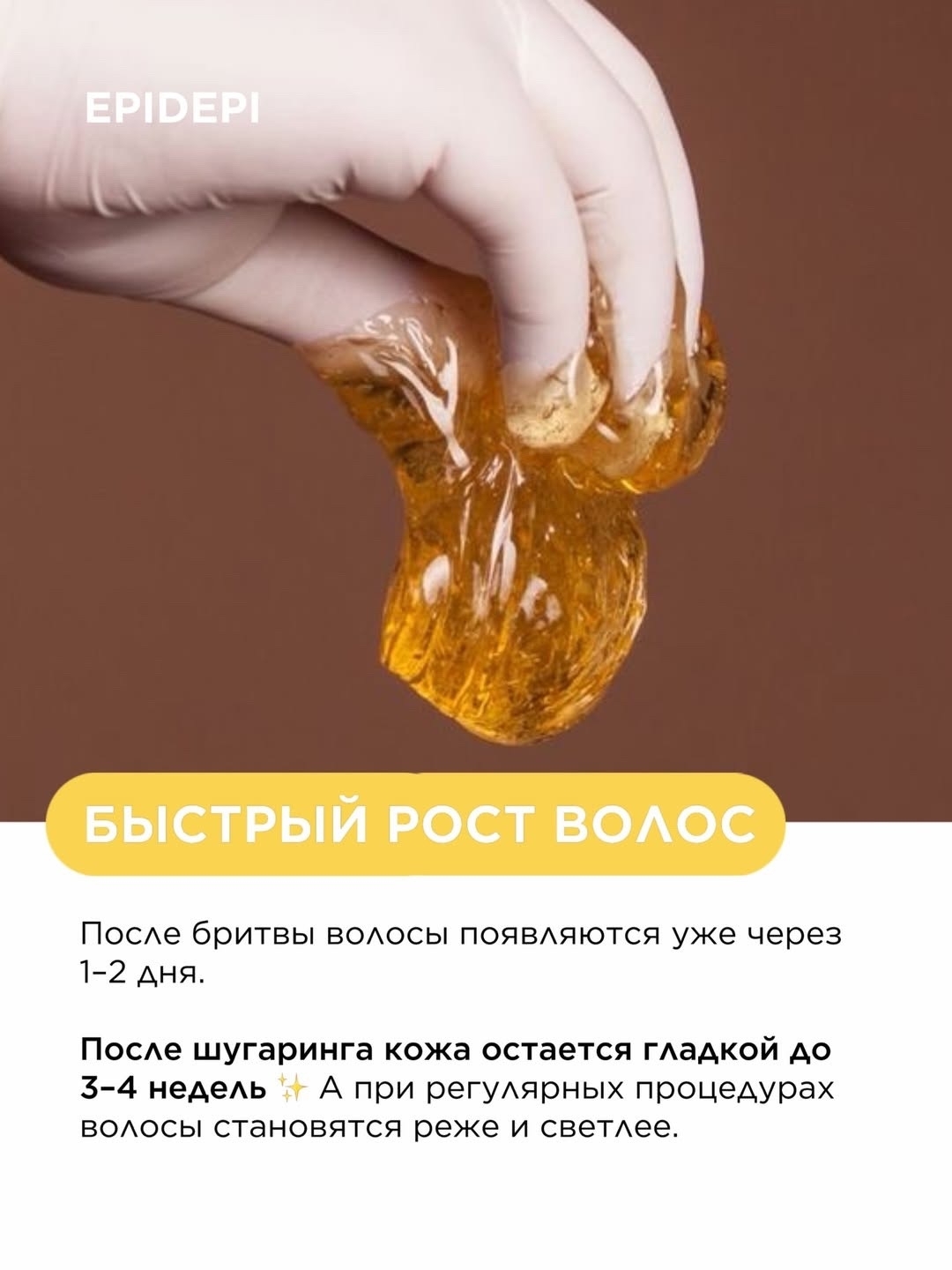 Шугаринг работает иначе.Мы аккуратно удаляем волос с корнем*, не травмируя кожу.После процедуры кожа дольше остаётся гладкой, а со временем волос становится мягче и растёт медленнее.⠀