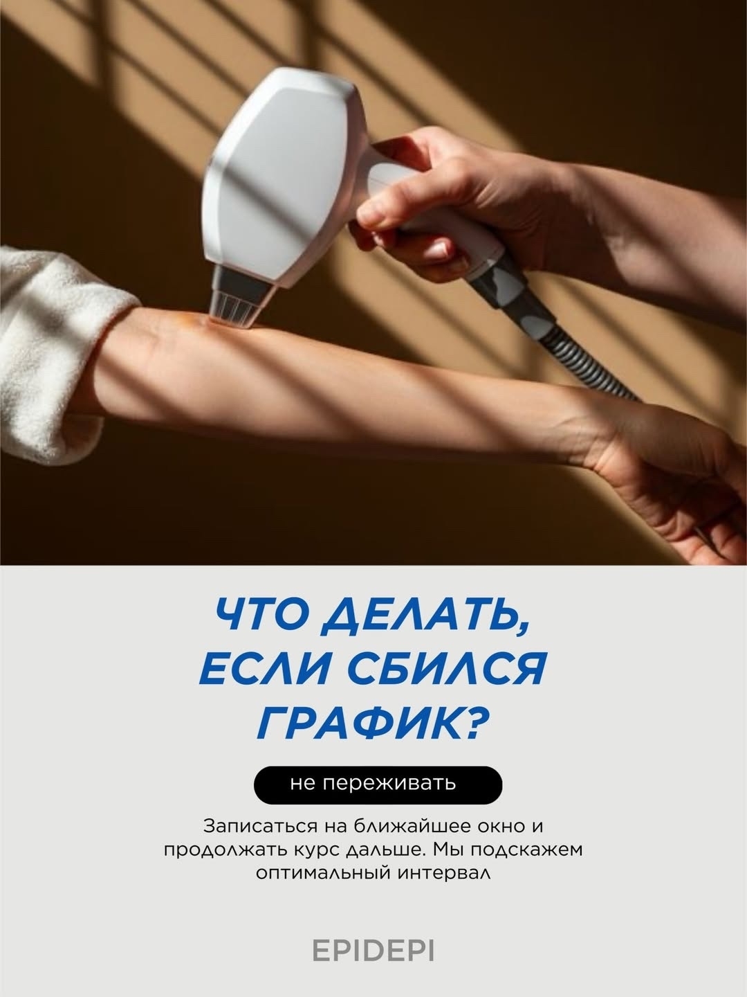 В EPIDEPI мы подбираем персональный режим,напоминаем о визитах и при необходимости корректируем интервалы, чтобы вы получали результат, а не просто «ходили на процедуры».Листайте карусель —и приходите к нам за грамотным и комфортным ведением курса 🤍